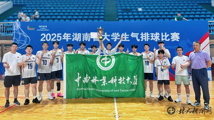 ▲我校男子排球队荣获2025年湖南省大学生气排球比赛高水平组冠军