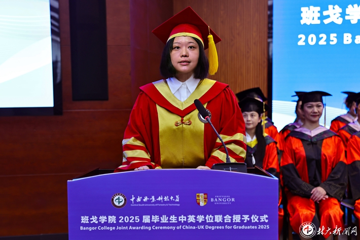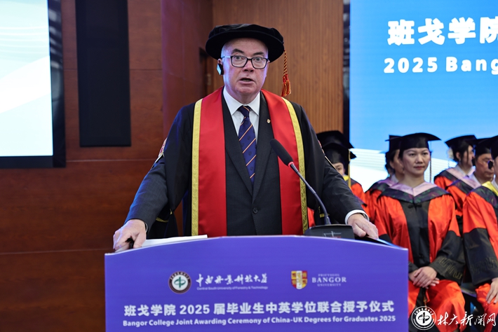 爱德华兹代表班戈大学向取得优异成绩的毕业生表达最热烈的祝贺。他表示,今年是中南林业科技大学班戈学院成立的第十一年,同学们作为班戈大学和中南林业科技大学间的“大使”,在未来的职业生涯中,要勇于迎接挑战,抓住机遇,为历史与传承做出贡献。