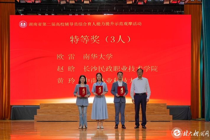 【林大网讯】(文/学生工作部、武装部)5月20日—23日,湖南省第二届高校辅导员综合育人能力提升示范观摩活动在南华大学圆满落幕,我校国家公园与旅游学院辅导员黄玲从118名参赛选手中脱颖而出荣获特等奖。学校在该项赛事连续两届斩获特等奖。