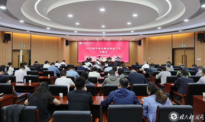 党政办公室、组织部、学生工作部、本科生院(招生办公室)、研究生院、科学研究部、团委、创新创业学院(就业指导中心)等部门负责人和各学院党委(党总支)书记、院长、副书记、就业专干参加会议。(摄影/王天宏 一审/杨家伟 二审/张胜利 三审/周预分)