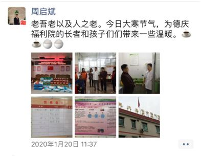 在肇庆,由周启斌发起成立的“梦想花开·希望上品”关爱困境儿童大联盟活动已连续举办十二届,资助孤儿1000余人次,资助金额200余万元。该活动成为广东省红十字会6个重要推广项目之一,周启斌也由此获得“广东省红十字会系统先进个人”“肇庆身边好人”“广东好人”等荣誉称号。新冠肺炎疫情期间,周启斌所在公司捐赠现金、消毒液、口罩等物资达230余万元,公司被评为“中国抗击新冠疫情白名单企业”。今年1月,公司又为西藏地震灾区捐款10万元。
