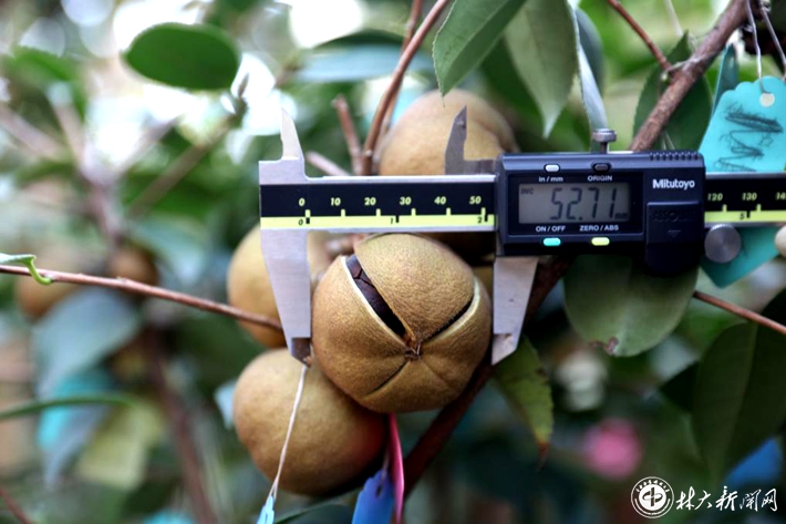 ▲“德油2号”油茶新品种测产现场