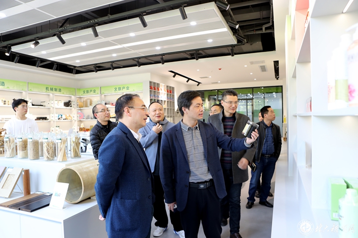 刘中海一行实地参观我校大学生创新创业基地,详细了解我校创业孵化、创新赛事组织等情况。