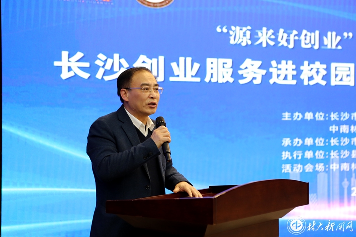 【林大网讯】(文/教务处)3月21日下午,“‘源来好创业’——星梦想,在长沙”长沙创业服务进校园活动在我校博文楼立德厅举行。副校长尹健、长沙市人社局副局长刘中海、长沙市创业指导中心副主任何权恒出席活动,学校相关部门负责人、创业学生代表300余人参加活动。