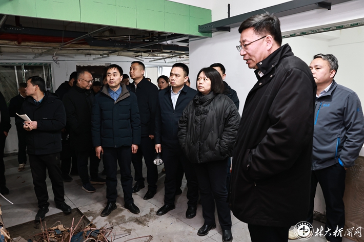 ▲吴义强、仇怡一行检查林苑餐厅负一楼项目建设工地