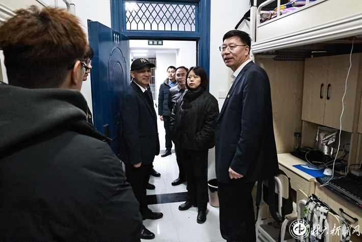在学生宿舍,吴义强、仇怡一行深入了解学生返校和住宿情况,与同学们拉家常、谈学习,鼓励同学们健康作息、积极向上,并叮嘱相关部门要不断改善住宿条件,用心、用情、用力服务学生。