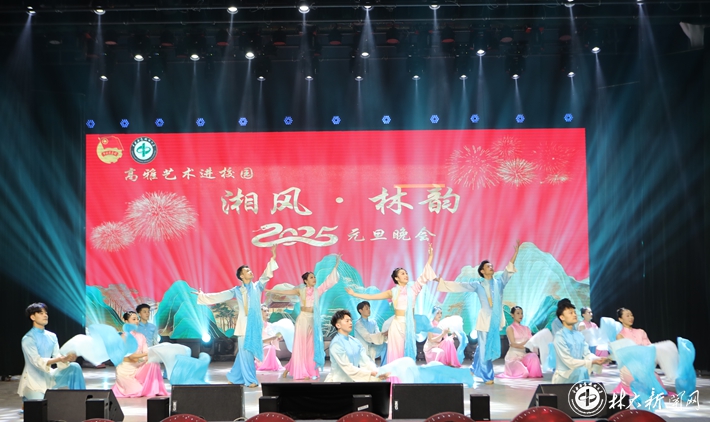 【林大网讯】(文/校团委)2024年12月31日晚,高雅艺术进校园——《湘风•林韵》元旦晚会在雅韵堂成功举办,校领导吴义强、仇怡、王忠伟、尹健、闫文德、刘高强、周小毛、方小斌出席,10000余名师生在线上、线下观看演出。
