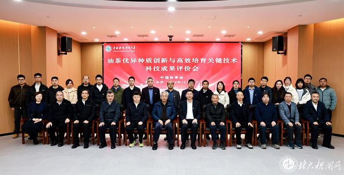 ▲中国林学会组织专家对我校主持完成的“油茶高产品种创制及花果调控关键技术”科技成果进行评价