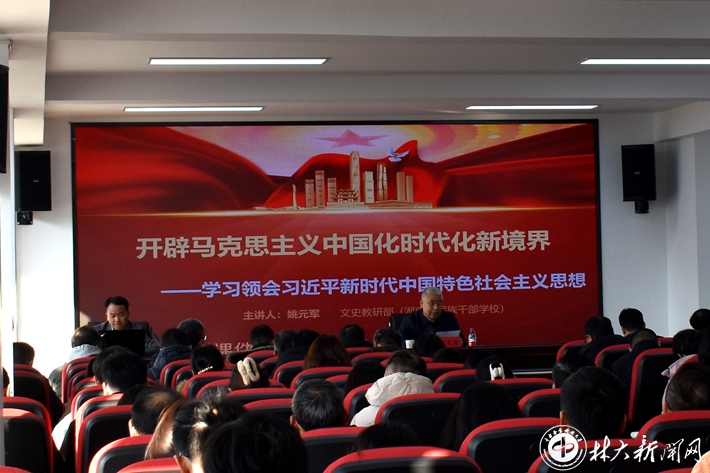【林大网讯】(文/研究生院)1月10日上午,中共湖南省委党校文史教研部副主任姚元军副教授应邀来校开展义务送教,作《开辟马克思主义中国化时代化新境界——深入学习领会习近平新时代中国特色社会主义思想》专题辅导报告。副校长闫文德主持报告会,相关部门和学院100余名党员教师参加会议。