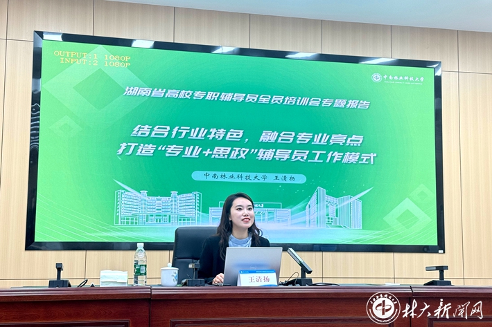 ▲王清扬作为代表在湖南省“芙蓉计划”优秀思政工作者论坛发言