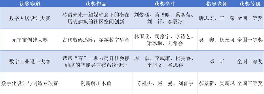 学校高度重视比赛,专门成立竞赛组委会和指导教师团队,精心组织、悉心指导,经过近10个月的反复打磨和层层选拔,4支队伍入围总决赛。经过激烈角逐,家居与艺术设计学院刘悦涵团队获得数字人居设计大赛组一等奖,前沿交叉学科学院林雨欣团队获得元宇宙创建大赛组一等奖,家居与艺术设计学院周颖团队、陈祖杰团队分获数字工业设计大赛组二等奖和数字化设计与制造专项赛组三等奖。