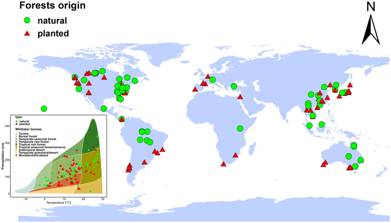 森林生态系统功能和服务高度依赖于碳固存与水消耗之间的有效平衡,而这一平衡对减缓全球气候变化至关重要。近年来,人工林因其在碳固存和木材生产方面的关键作用,愈发受到广泛关注。然而,大面积造林与再造林活动可能对局部水平衡产生不利影响。由于气候条件及林分特征(如树种、森林覆盖、树高、基底面积、林龄)的差异,人工林对产水和水分利用效率的影响存在分歧,引发了关于森林-水关系的持续讨论,尤其是在干旱或洪涝频发的地区。