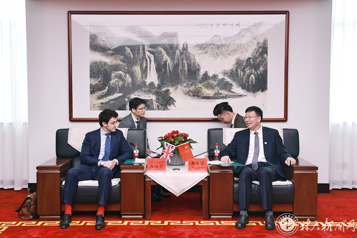 ▲中国工程院院士、校党委书记吴义强会见英国客人