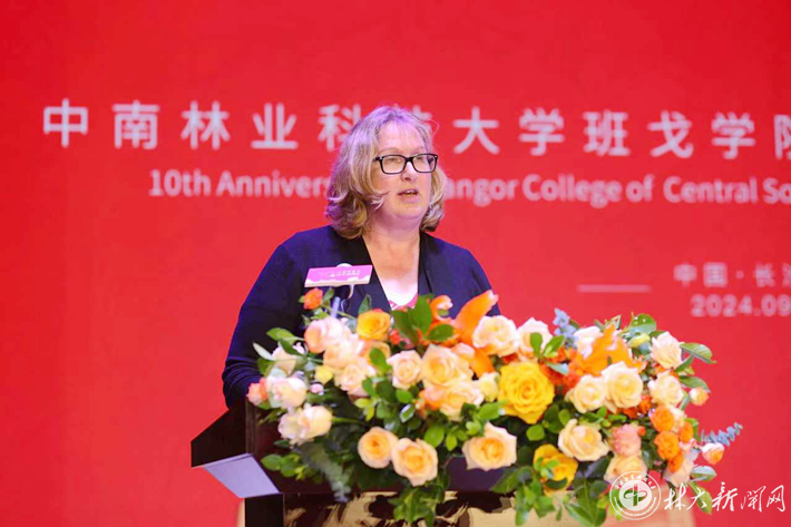 仇怡在致辞中表示,班戈学院是中英合作办学的代表成果,十年办学之路,是中英融合、勇开先河的探索之路,是桃李满枝、芳华成蹊的育人之路,是凝心聚智、力求卓越的创新之路。她强调,要以办学十周年为契机,以习近平主席对美国肯恩大学校长的复信精神为指引,致力于将全球各地优势教育资源与先进办学经验有机融合,为推动合作办学高质量发展和中外人文交流贡献“中南林智慧”。