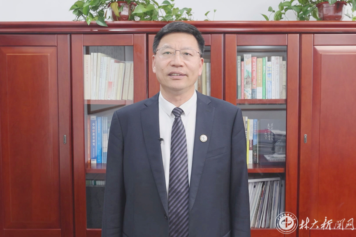 ▲中国工程院院士、校党委书记吴义强作视频讲话