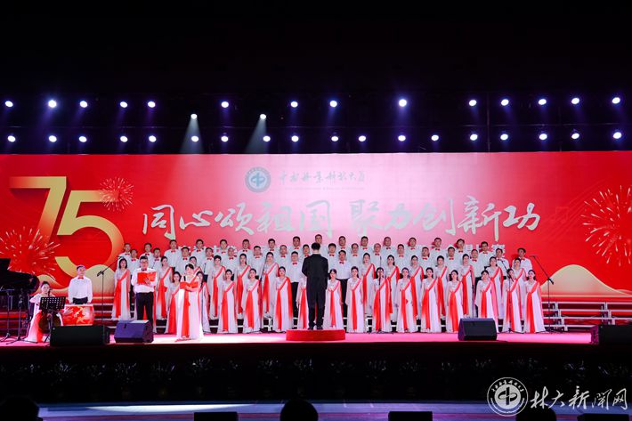 【林大网讯】(文/校工会)9月28日晚,学校体育艺术馆歌声嘹亮,“同心颂祖国,聚力创新功”庆祝中华人民共和国成立75周年教职工合唱比赛隆重举行。来自学校26个分工会的26支合唱队共1700多教职员工登台亮相,唱响红歌,献礼新中国75周年华诞。校领导吴义强、仇怡、陈冬林、杨鑫铨、王忠伟、尹健、刘高强、周小毛、方小斌在活动现场与3000余名师生共同观看演出。