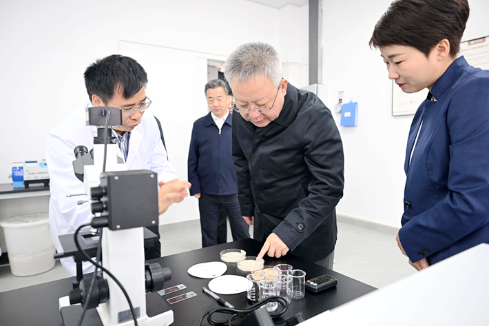 ▲林亲录向湖南省委书记沈晓明介绍人工智能靶向碾磨米珍米的特点