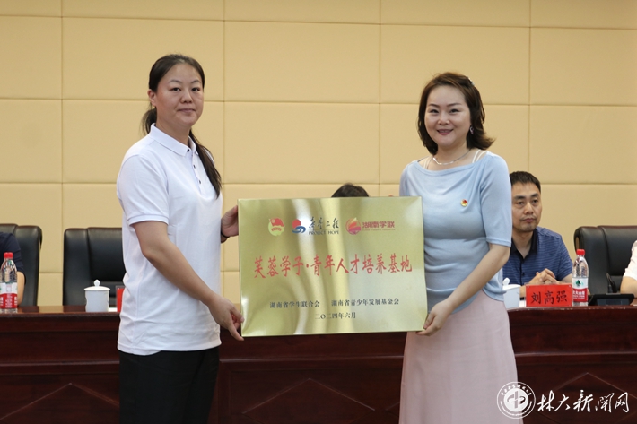 会上,省希望工程办公室主任、省青少年发展基金会理事长谢小玲为我校基地授牌。