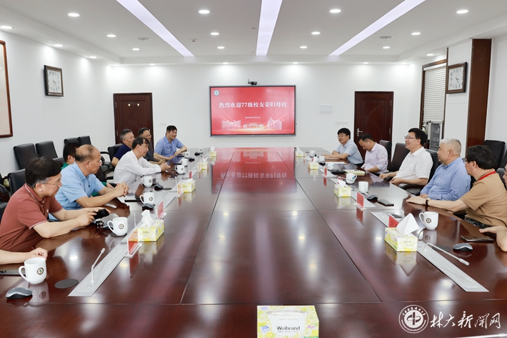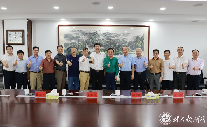【林大网讯】(文/林学院)5月21日下午,77级林学专业黄喜佳校友一行8人重回母校,就感怀母校情谊、参加“校友回湘”活动、助力学校高质量发展等与学校领导和师生代表交流座谈。中国工程院院士、学校党委书记吴义强,党委副书记王忠伟、副校长闫文德出席有关活动。