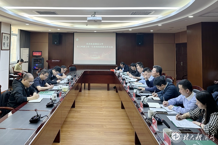 【林大网讯】(文/科学研究院)5月6日上午,湖南大学机器人视觉感知与控制技术国家工程研究中心副主任朱文峰一行来校开展科研合作交流。学校副校长尹双凤出席座谈会,科学研究院副院长周航主持会议。