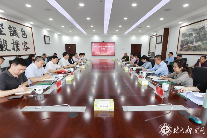 段美娟、何旭娟介绍了湖南女子学院发展历程、办学特色、发展愿景等方面情况,对我校在高层次人才输送和学科建设等方面的支持表示感谢。她们表示,湖南女子学院当前正处于深化改革发展的关键时期,希望与学校在学科专业优化调整、科研教学质量提升、人才交流与合作、硕士点申报方面加强交流,共同谱写双方合作发展新篇章。