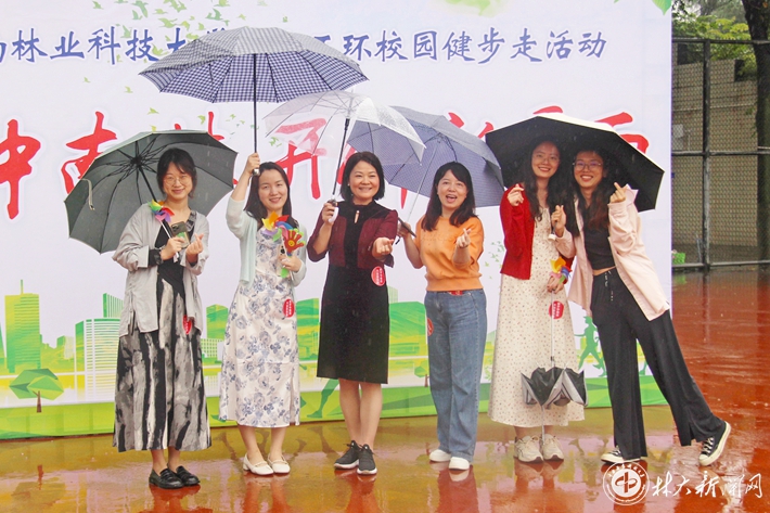 活动以“健步中南林,开创新局面”为主题,全程近四公里。绵绵细雨中,参加活动的教职工健步行进在清爽、温馨的校园,不时传出欢乐的笑声。