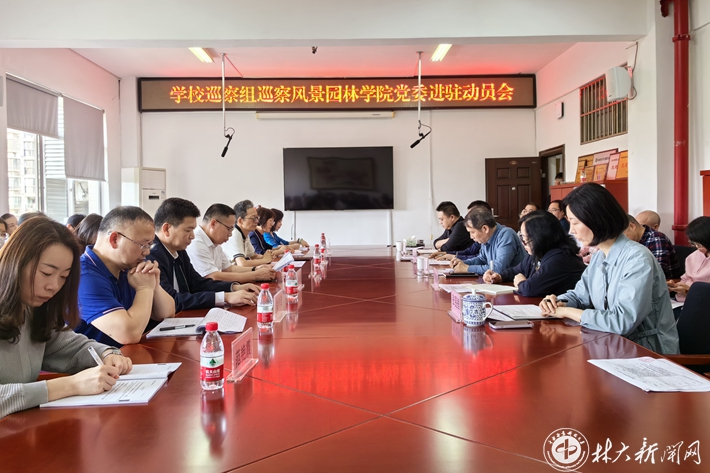 第一巡察组组长童显德、第二巡察组组长蒋炳春分别代表巡察组作动员讲话。林学院党委书记李强、风景园林学院党委书记夏传格分别作了表态发言。