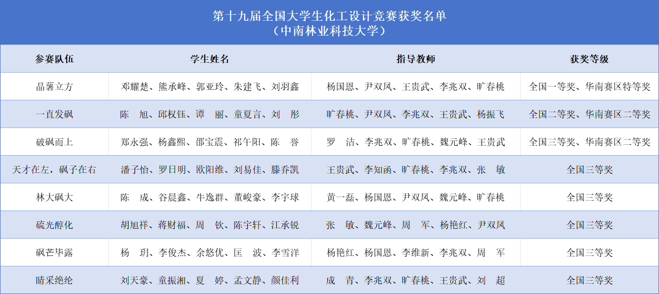 【林大网讯】(文/化学与化工学院)近日,第十九届全国大学生化工设计竞赛总决赛在天津大学举行。我校学子在比赛中斩获全国一等奖1项、二等奖1项、三等奖6项。我校在该项赛事中已连续3年获全国一等奖。