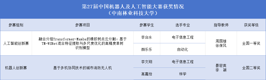 【林大网讯】(文/电子信息与物理学院)8月5日—8日,第27届中国机器人及人工智能大赛全国总决赛在江苏省苏州职业技术大学举行。我校在比赛中斩获全国一等奖1项、二等奖1项。