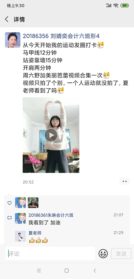 我是体育部夏帅,任教班级一共7个班,3个2019级的体育基础班,4个2018级的形体礼仪专项班。