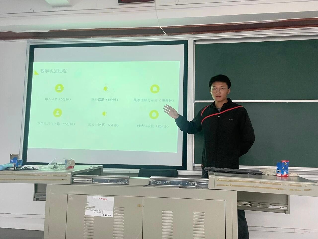 为深入贯彻落实教育部《高等学校课程思政建设指导纲要》精神,推动体育课程与思政教育深度融合,提升教师课程思政教学能力,中南林业科技大学涉外学院体育课部于4月16日在明德楼1215成功举办“2025年课程思政教学竞赛选拔赛”。本次比赛以“以体育人,以德铸魂”为主题,吸引了体育课部10余名教师同台竞技,充分展现了体育教学中思政元素的创新设计与实践成果。